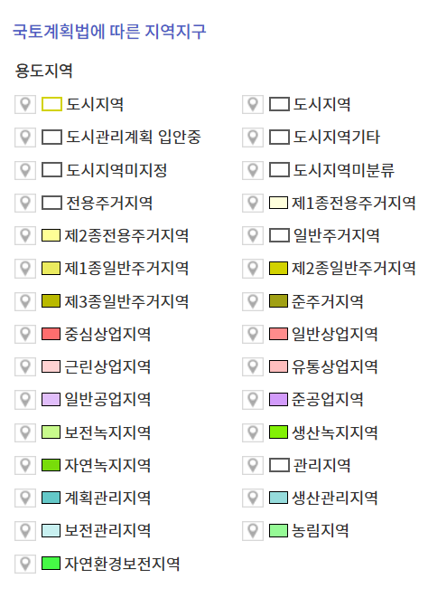 토지이음의 가장 큰 장점은 지적도뿐만 아니라 다양한 토지 정보를 한 번에 볼 수 있다는 것입니다. 화면에는 해당 필지의 면적, 개별공시지가, 용도지역(주거지역, 상업지역 등), 지역·지구 지정 현황, 도시계획시설 여부 등이 모두 표시됩니다.